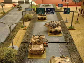 British: Units deploy up to 30" in on the road (as marked on the map) and up to 4" either side of the road itself. At least one tank troop must be in the lead, otherwise units can be placed on the road in any order, with unit unable to fit moving on the table as they are activated (and can fit). British vehicles cannot move be farther than 4" from the road until they are past the first 30" of road (passing the deployment zone) - this does not apply to infantry/dismounted teams. This remains in effect throughout the game and represents the constricted space the British had to work with.