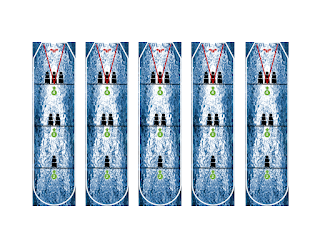 Wake templates for the ships are below. This are intended to be printed off double-sided and cut out so you can flip them over each turn to indicate which ships have activated. They are used to mark the current sail settings for the ships (full sail - top, battle sail - middle, and easy sail - bottom).